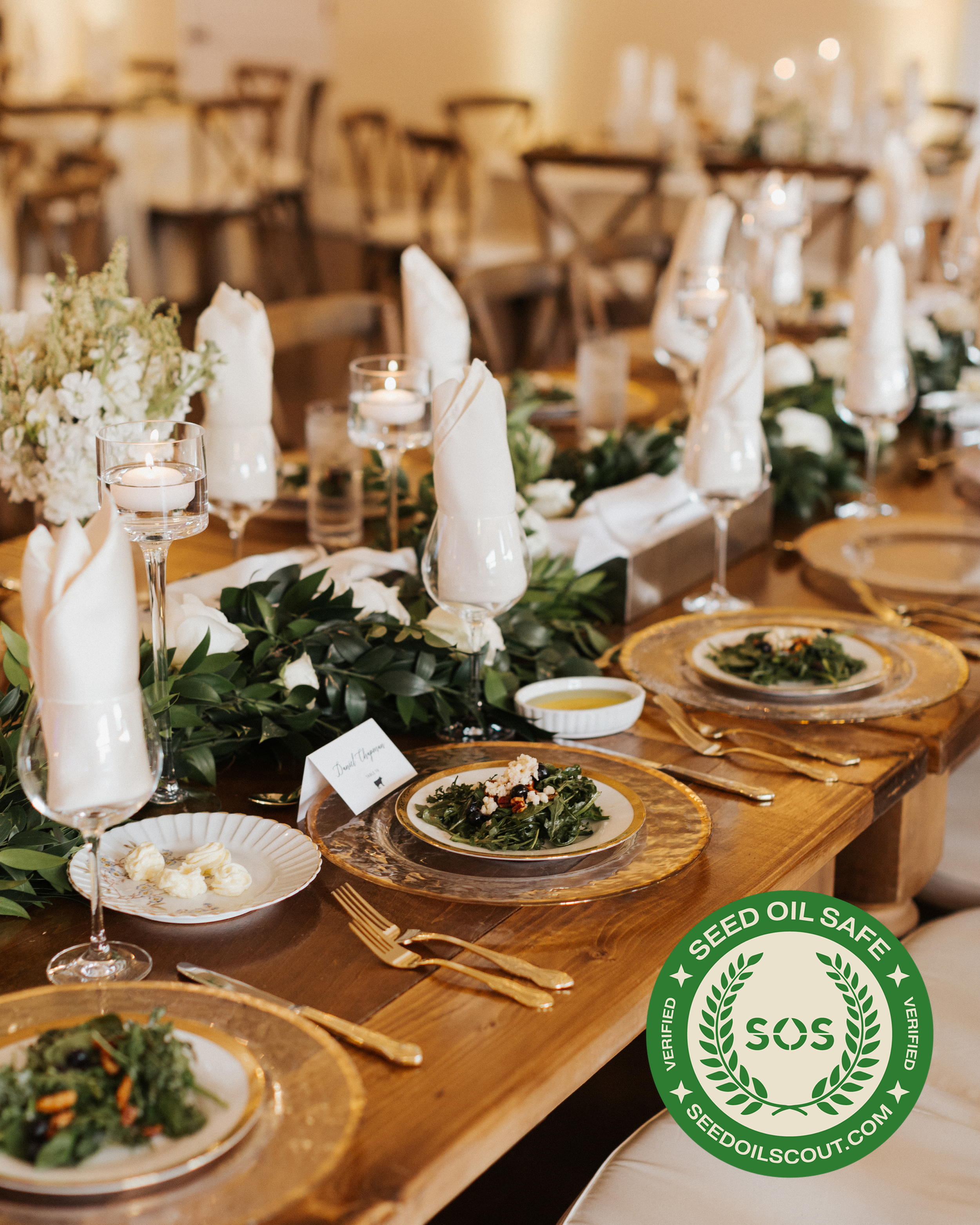 Every dish we serve begins with ingredients we trust. Many are grown and harvested at our own farm. We prepare scratch-made, seed-oil-free menus because we believe every guest deserves to feel cared for, every host deserves to feel proud, and you deserve to know exactly what goes on your plate.